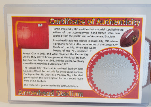Kansas City Chiefs Collectible Pen - Made with Seats from Arrowhead Stadium (GEHA Field)