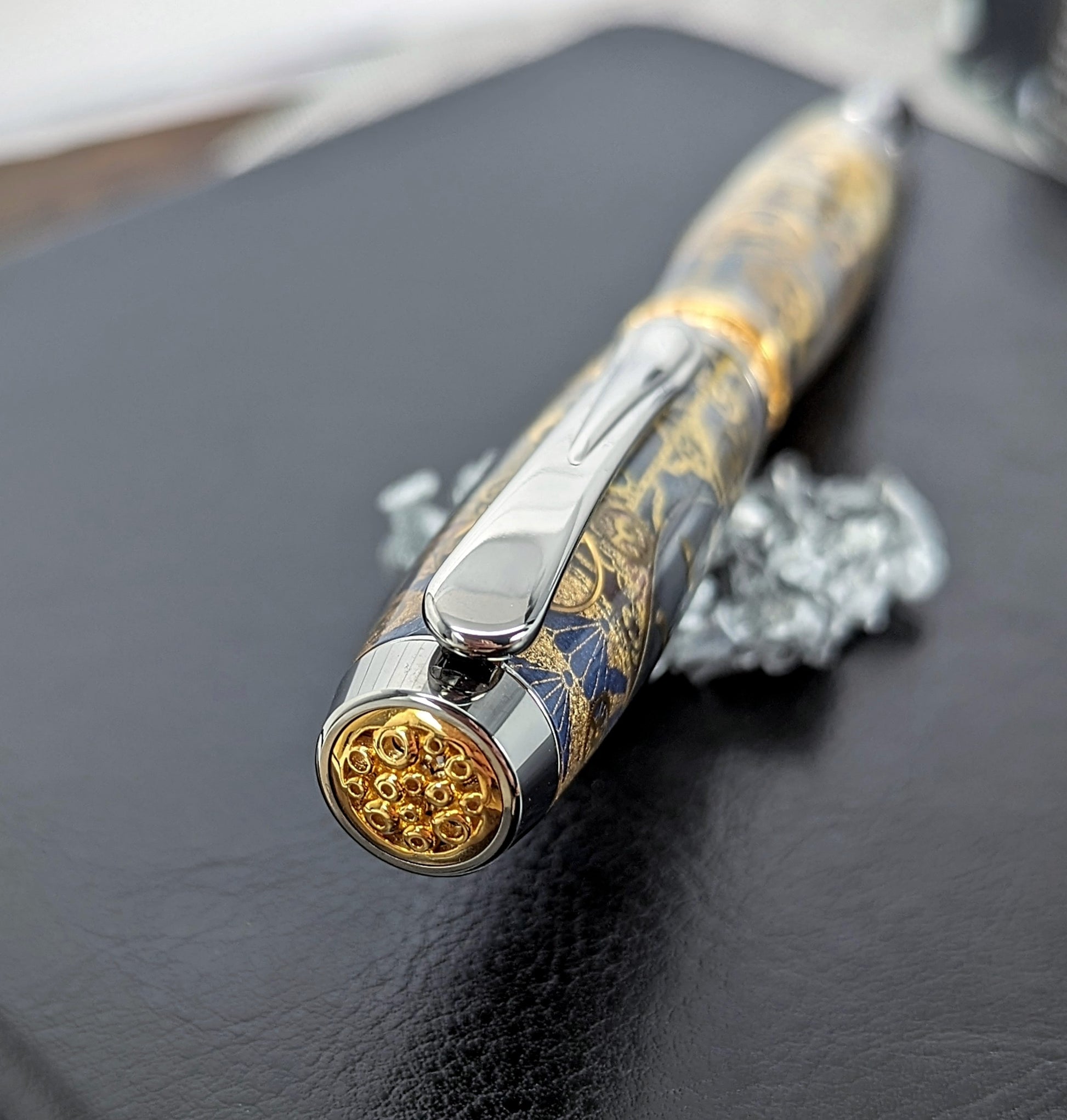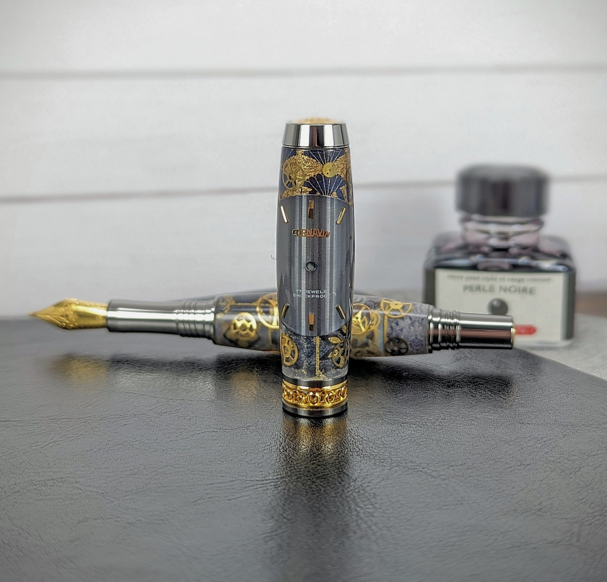 This pen was created with a true stylophile in mind, someone who appreciates the art of writing and the beauty of a well-crafted instrument. The process of making this pen was a labor of love, with every detail carefully considered and executed to perfection. The hand-woven washi paper background is not only visually stunning, but also provides a unique texture and feel to the pen. The individually hand-placed clockwork pieces add a level of intricacy and precision that is rarely seen in writing instruments. And the metal working is simply breathtaking, with every curve and detail expertly crafted to create a truly one-of-a-kind piece. When you hold this pen in your hand, you can feel the passion and dedication that went into its creation. It's not just a writing tool, it's a work of art that will inspire you to write your best work yet.