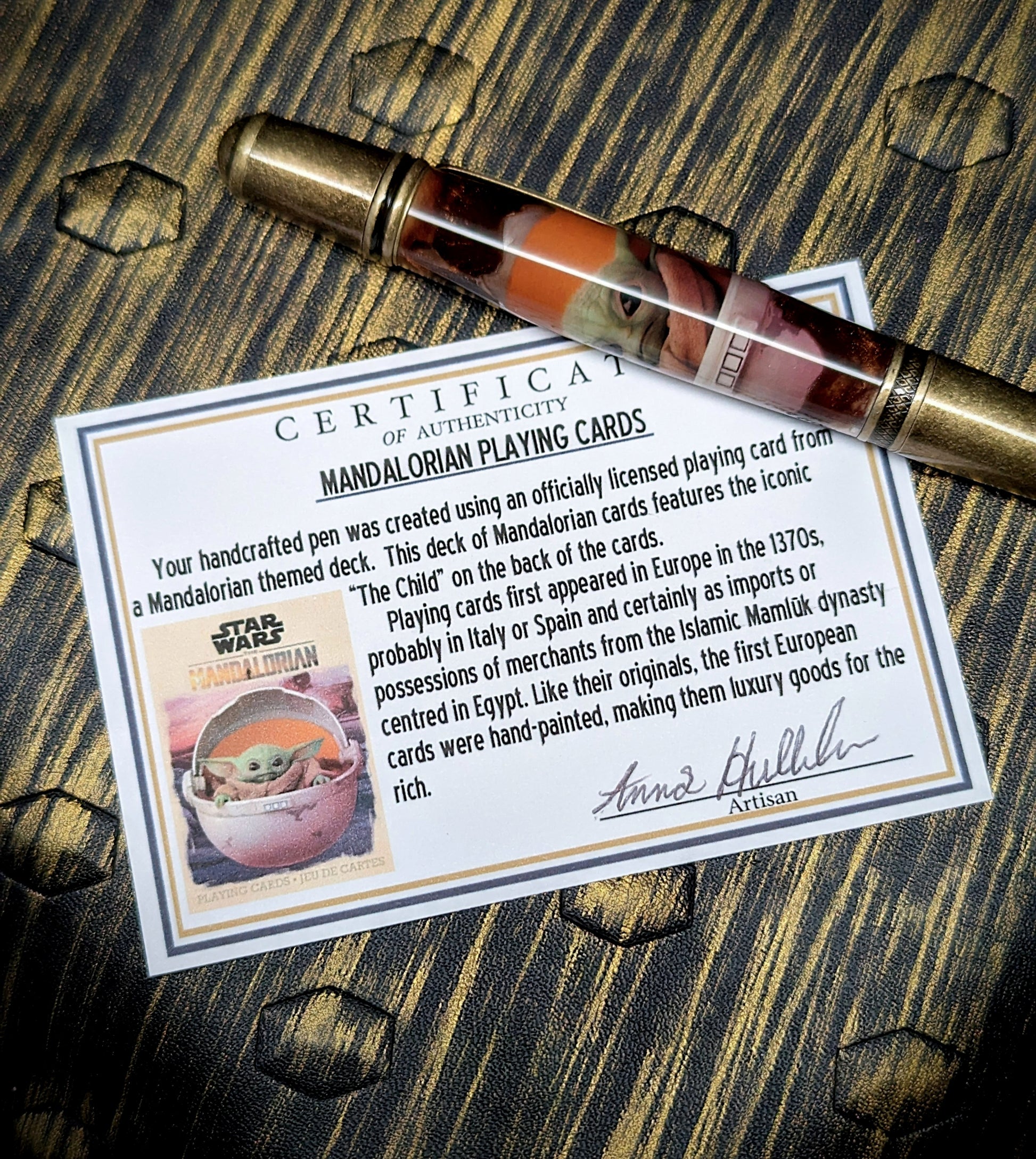 Whether you're a die-hard Star Wars enthusiast, a collector of unique stationery, or simply someone who appreciates the art of storytelling, this pen is sure to become a cherished companion. So why settle for an ordinary pen when you can wield a piece of pop culture magic? Upgrade your writing game today with the Din Grogu Playing Card Pen and make every word you write a celebration of creativity and imagination.