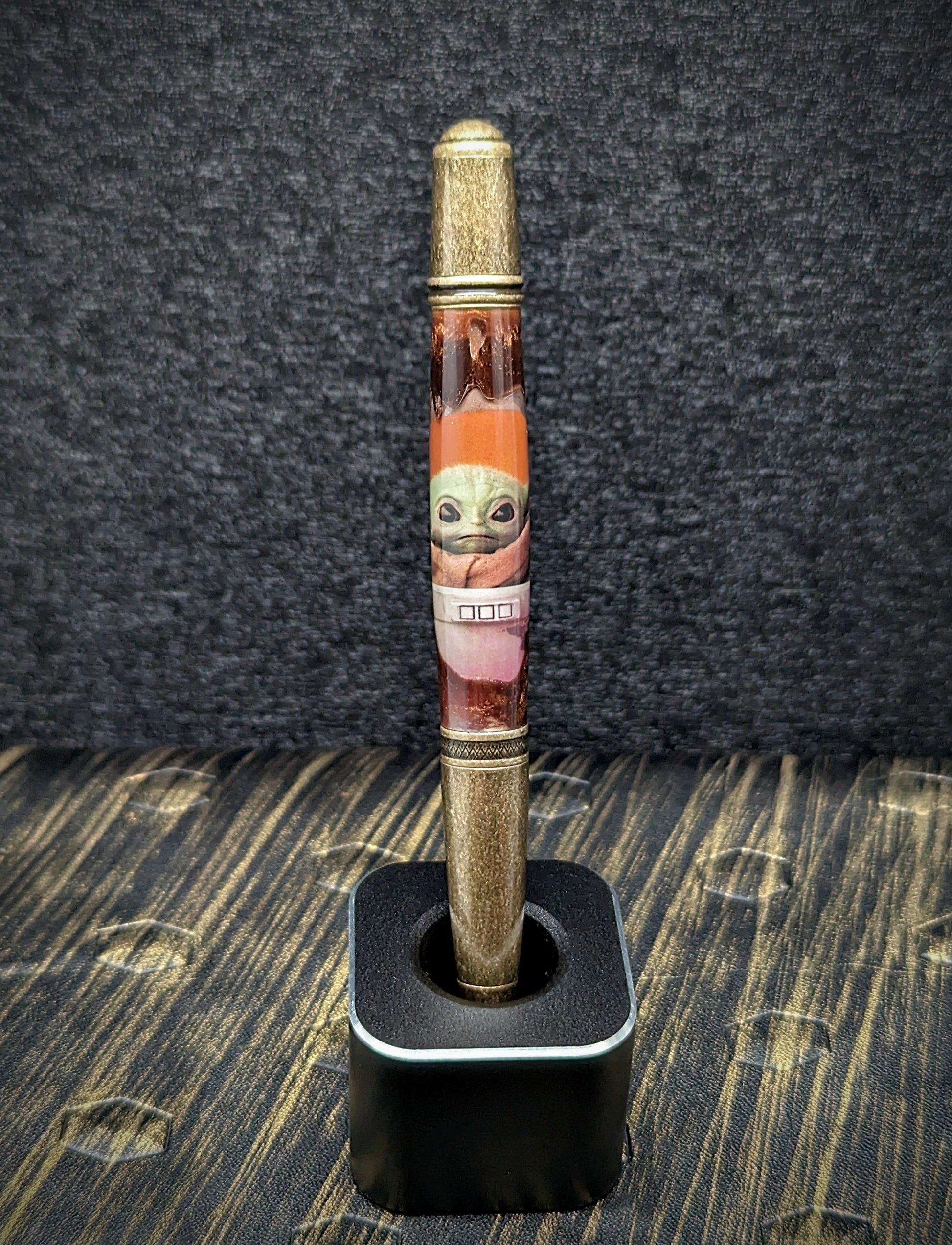 Crafted for both style and functionality, this pen offers a comfortable grip and smooth writing experience, ensuring effortless note-taking and essay-writing sessions. But what truly sets it apart is its captivating design - the image of Din Grogu, emblazoned on the pen, evokes a sense of whimsy and nostalgia, transporting users to a galaxy far, far away with every stroke of the pen.