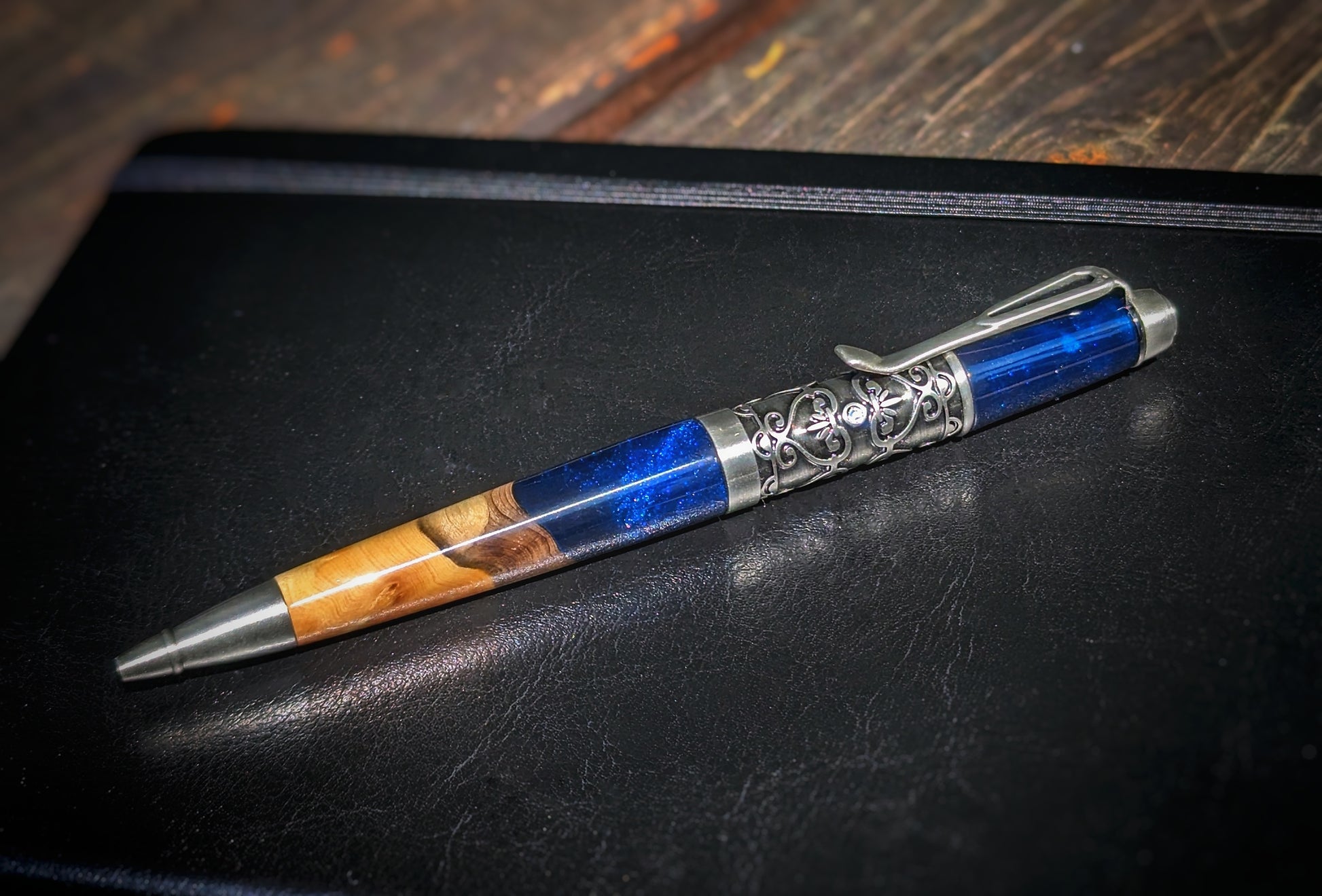 Experience the beauty of the Filibella pen with its intricate filigree pattern and sparkling Swarovski crystals. The sleek design is perfect for both men and women and uses a Cross-style refill. With an Antique Pewter finish that simulates time-worn pewter, the pen exudes a sense of history and warmth, bringing out the details of the finish that create a unique charm all its own. Let the elegance of the Filibella inspire you to put your thoughts to paper and make your mark on the world.