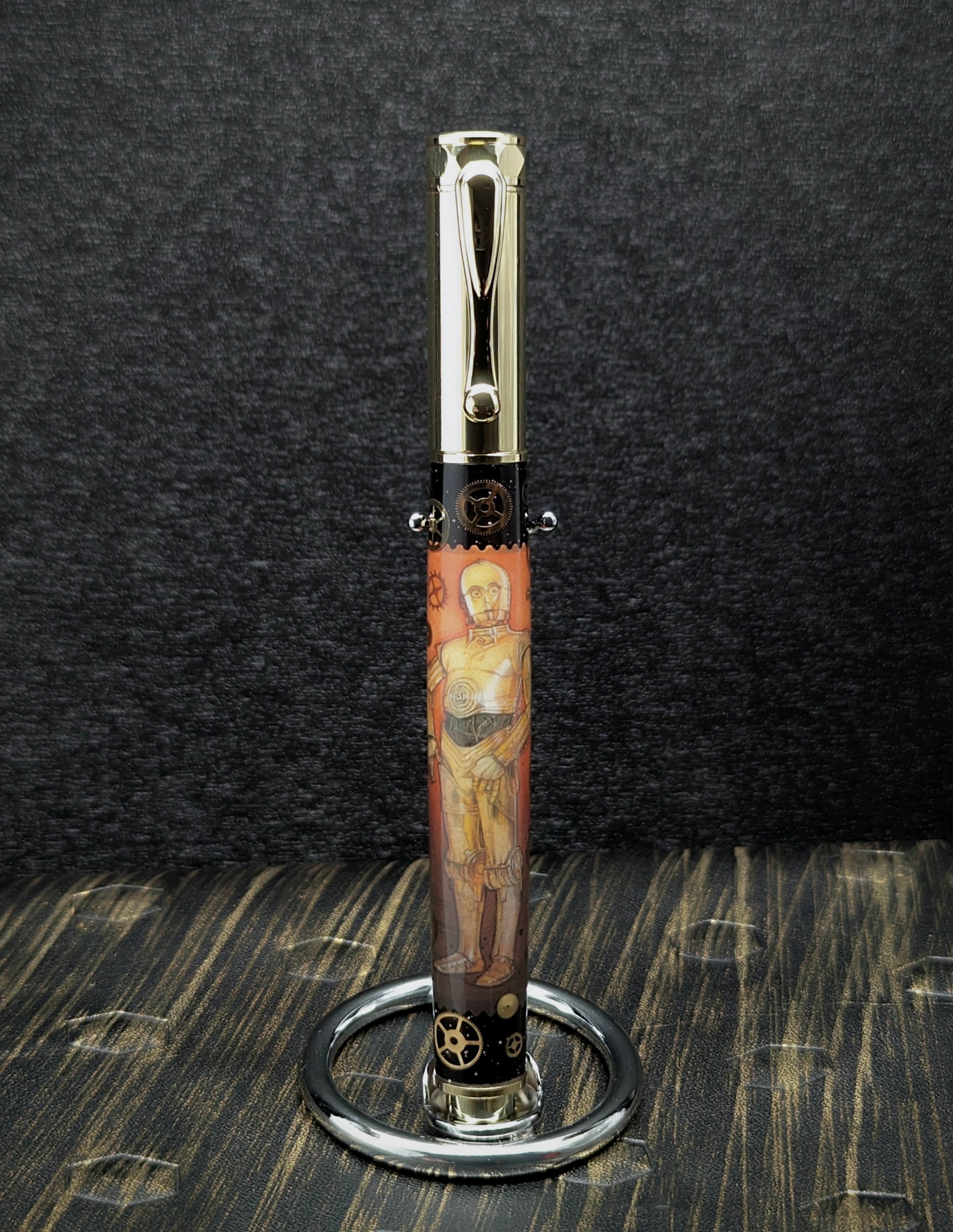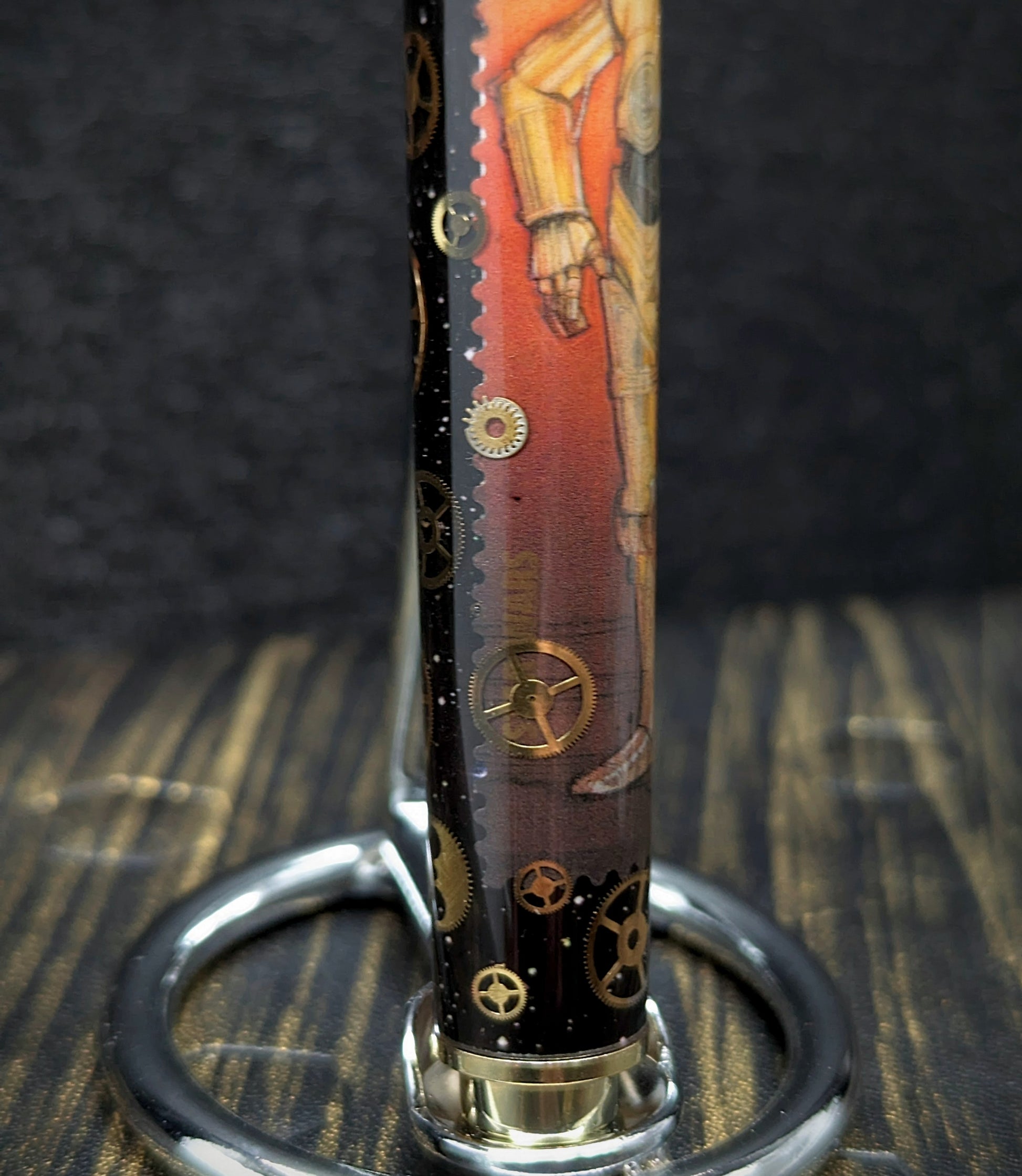 But what truly sets this pen apart is its collectible stamp: a miniature depiction of the iconic protocol droid, C-3PO, from the Star Wars saga. Perfectly capturing the essence of this beloved character, the stamp adds a touch of nostalgia and fandom to your everyday writing tasks.