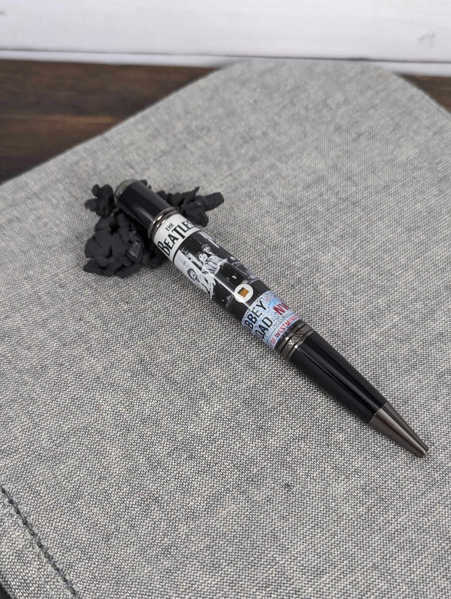 Embedded in the pen is apiece of the Abby Road studio where the Beatles recorded many of there songs.