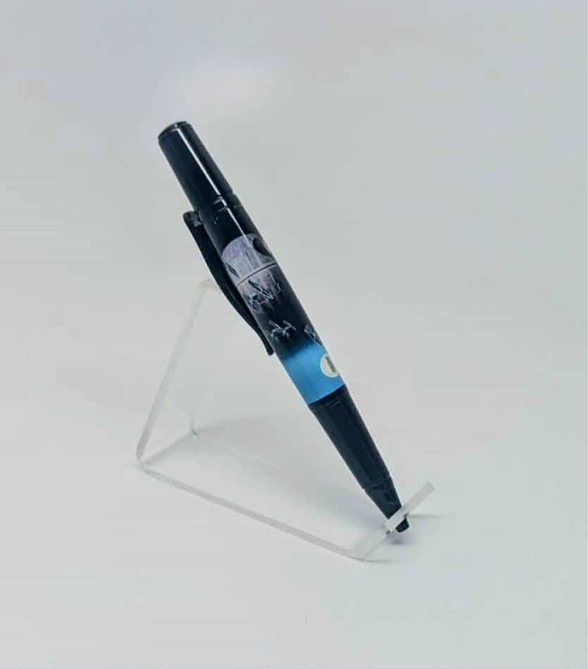 Own a truly unique piece of the Star Wars universe with this handcrafted twist-style ballpoint pen featuring an authentic fragment of production-used Death Star foam from Episode IV: A New Hope.