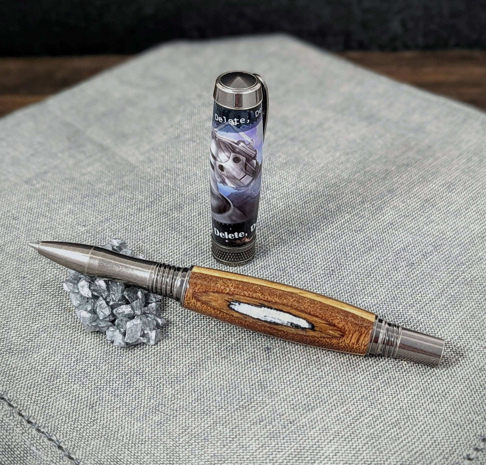 As a devoted Doctor Who fan, you cannot miss out on the chance to own this collectible pen. It is not just a writing instrument, it is a work of art that embodies the spirit of the Time Lord from Gallifrey. Crafted using wood sourced from the actual TARDIS, this pen is a symbol of imagination and inspiration. With its gun metal parts and a cap featuring a collectible stamp of the Cybermen, one of the Doctor's most formidable foes, it represents resilience and courage in the face of adversity. Let your creativity take flight and channel the Doctor's spirit of adventure and tenacity by adding this remarkable pen to your collection today.