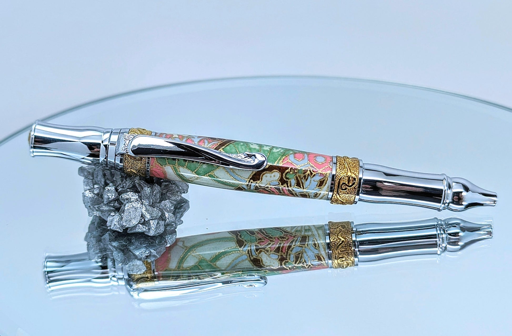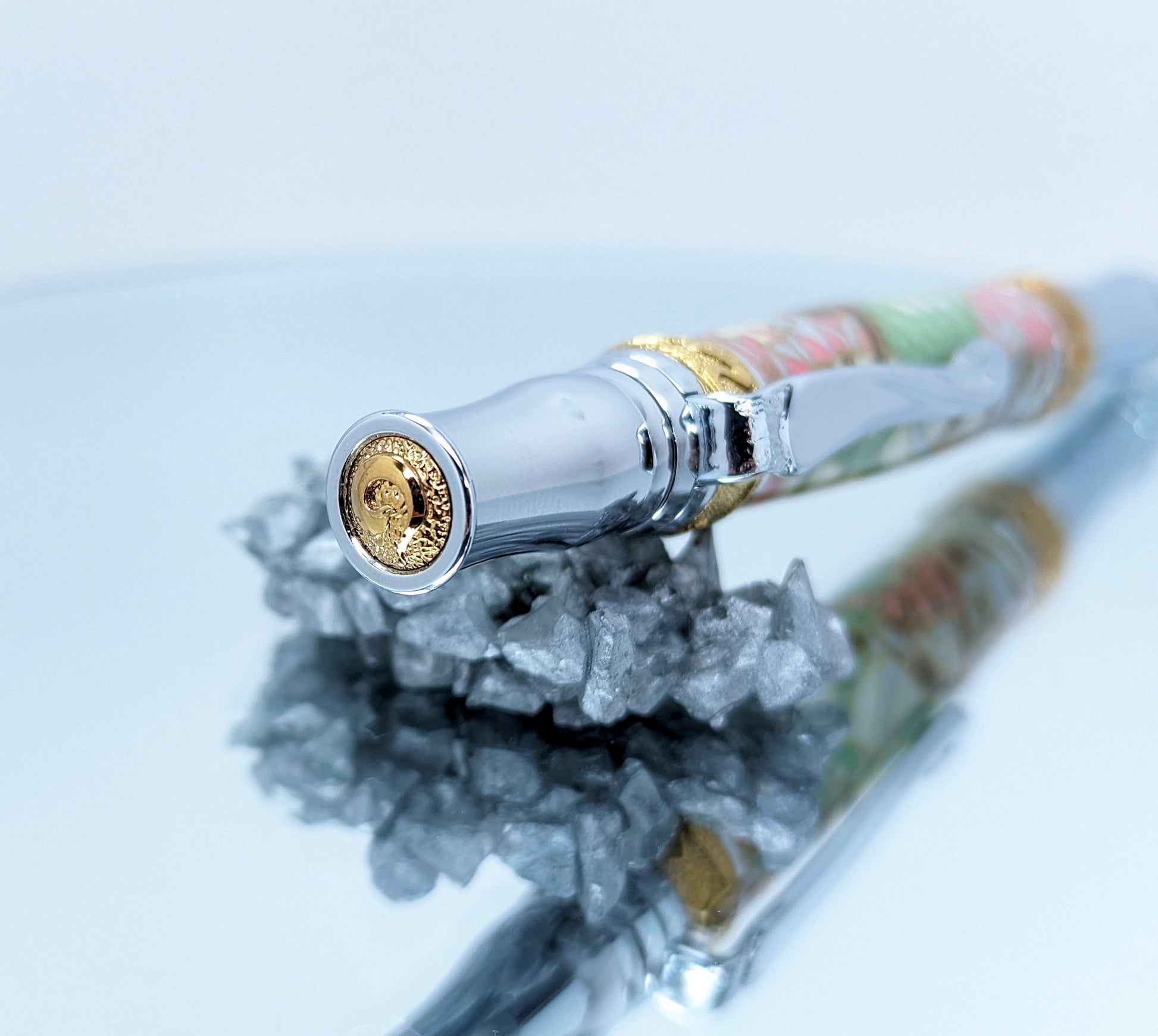 Adorned with delightful twists of green, pink, and gold, reminiscent of lush gardens and radiant sunsets, this pen is sure to spark joy with every stroke. Whether you're doodling, journaling, or simply jotting down notes, the smooth ink flow ensures a seamless writing experience.