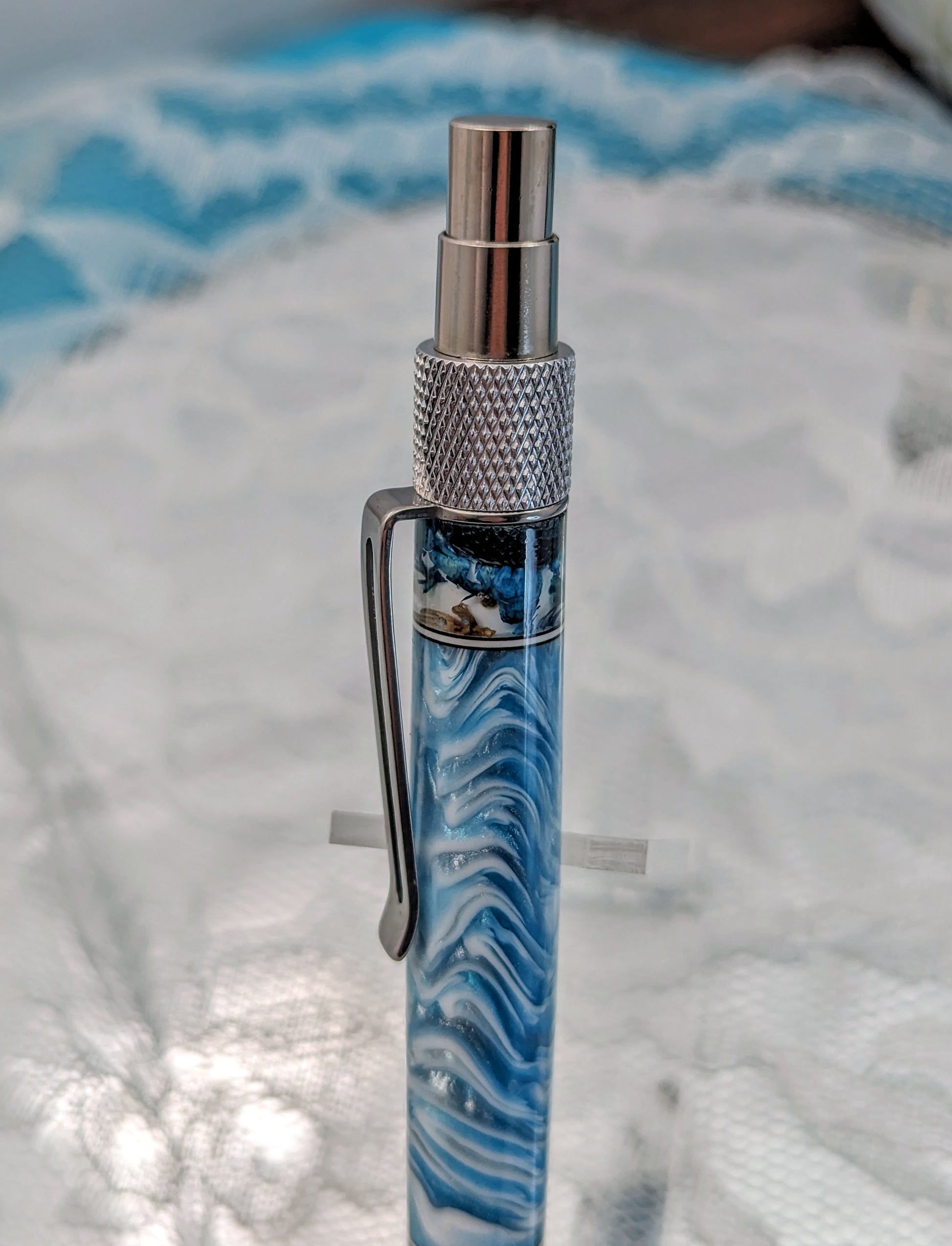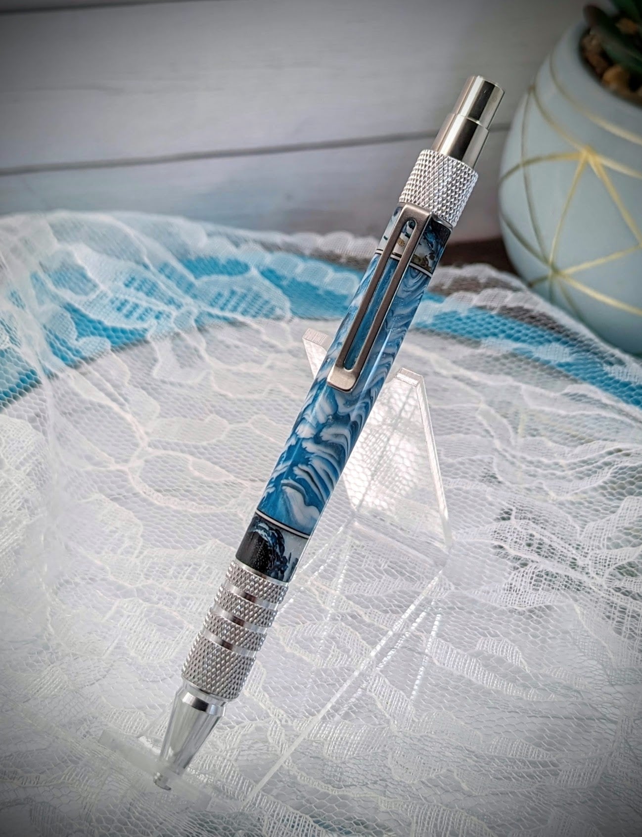 You deserve a pen that embodies the essence of winter and the power of the north wind. A pen that is not only built to last, but also to be your trusted companion in your everyday life for years to come. Made from raw 6061-T6 machined Aluminum, this pen is both lightweight and strong, withstanding daily wear without chipping or cracking. With an all-metal Schmidt SKM-88 click mechanical assembly, precision-engineered in Germany for ultimate durability, you can rest assured that this pen will never let you down. The tactical knurling design ensures an easy grip and a comfortable writing experience. And with a clip crafted from raw 303 Stainless Steel, this pen is not only resilient but also a symbol of your own strength and perseverance.