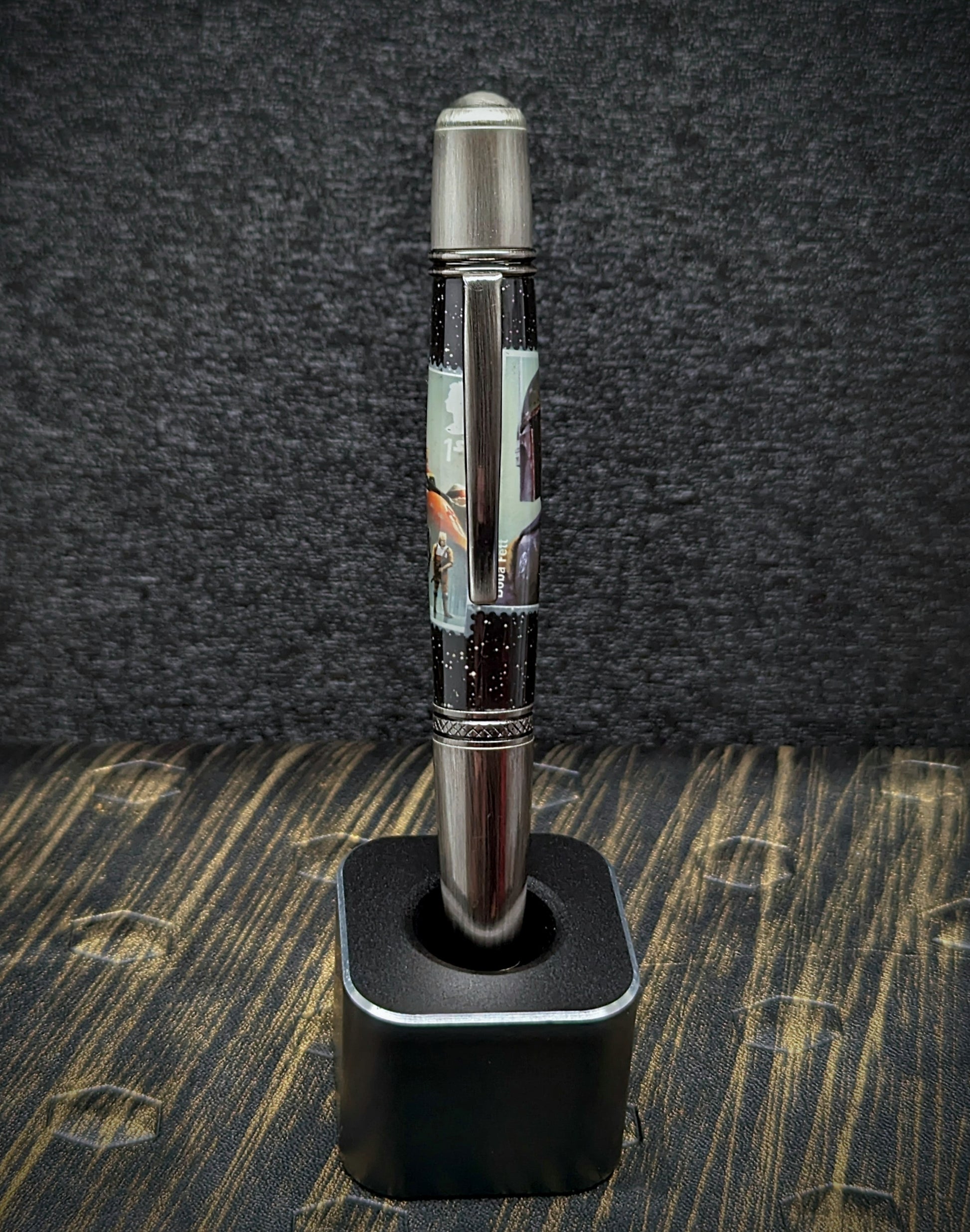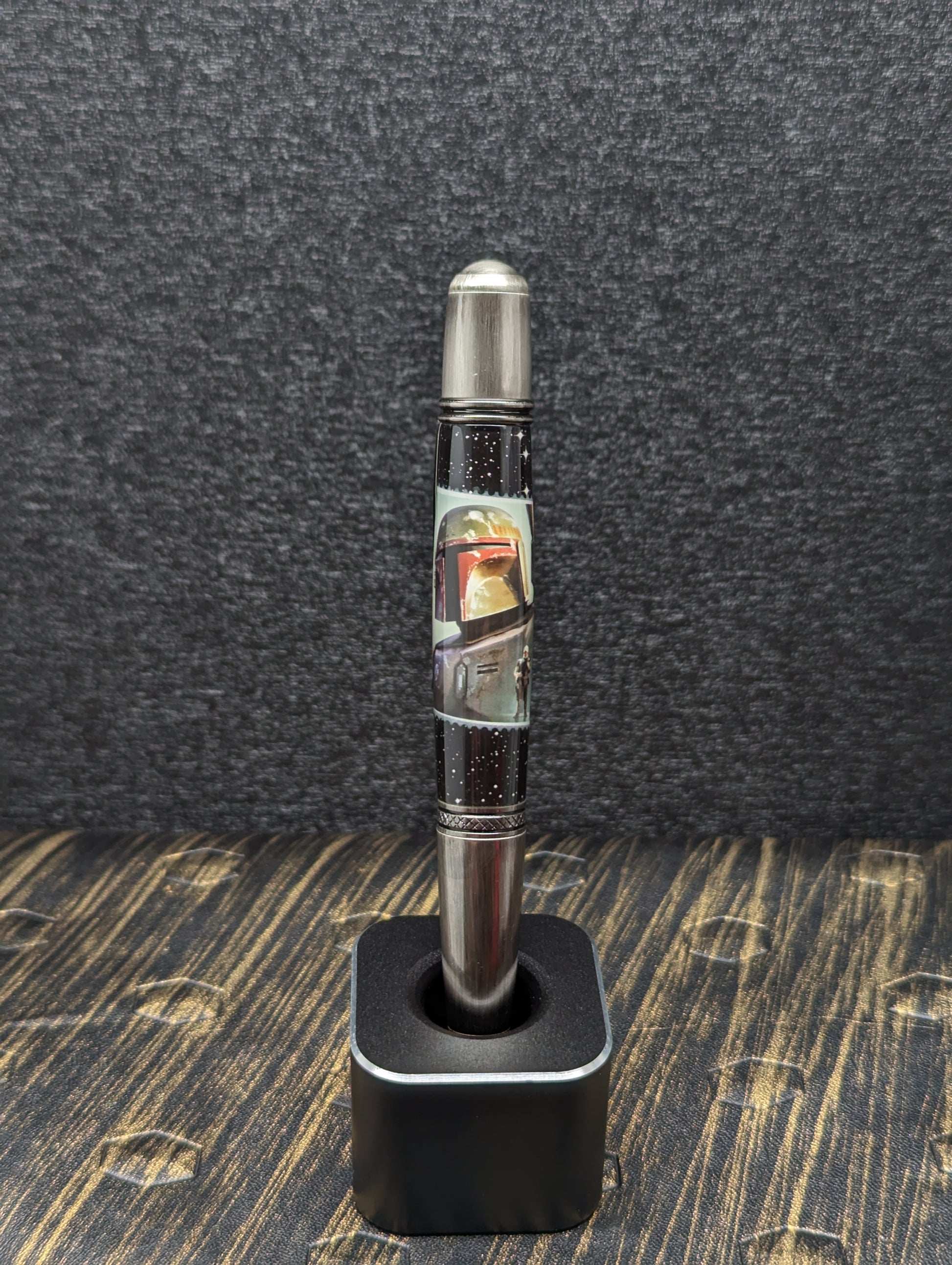 Whether you're jotting down notes, signing documents, or simply displaying your love for the galaxy far, far away, this pen is sure to impress. Its sleek design, combined with the striking Boba Fett stamp, makes it a standout addition to any collection or desk.