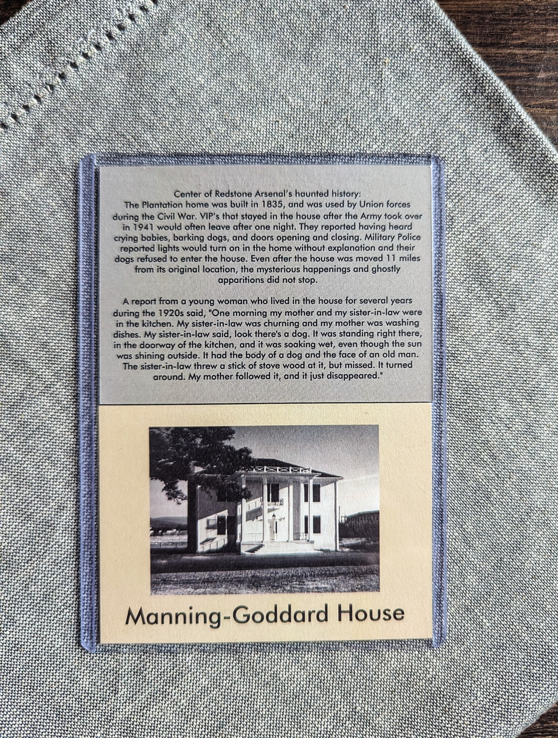 Introducing a unique and captivating piece of history, the Manning-Goddard House Pen. Crafted from the wood of the Manning-Goddard House, this pen encapsulates the haunted legacy and rich past of the Redstone Arsenal’s most notorious residence. Built in 1835 and serving various pivotal roles, including as a Union forces base during the Civil War, this house has witnessed numerous ghostly apparitions and unexplained phenomena.
