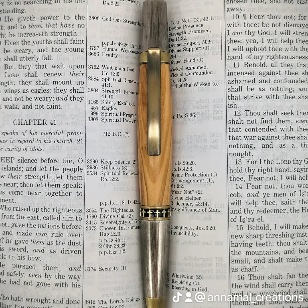 Introducing our exquisite pen crafted from authentic Bethlehem olivewood, a natural material renowned for its rich history and unique grain patterns. Sourced from the holy city of Bethlehem in Israel, this wood has been bearing fruit since the time of the Romans, ensuring each pen is steeped in history and tradition. The olivewood used is responsibly harvested from the pruning of young trees, the sprouts from old trunks, and unproductive trees, ensuring no damage to the environment.