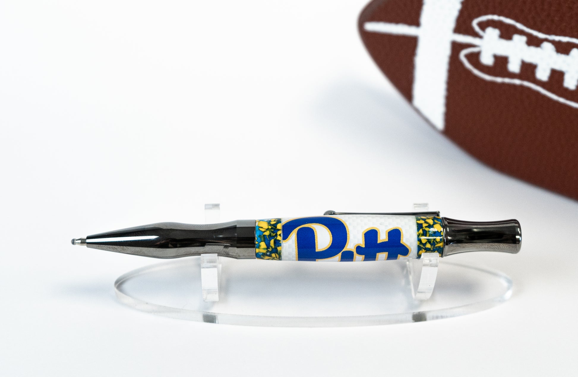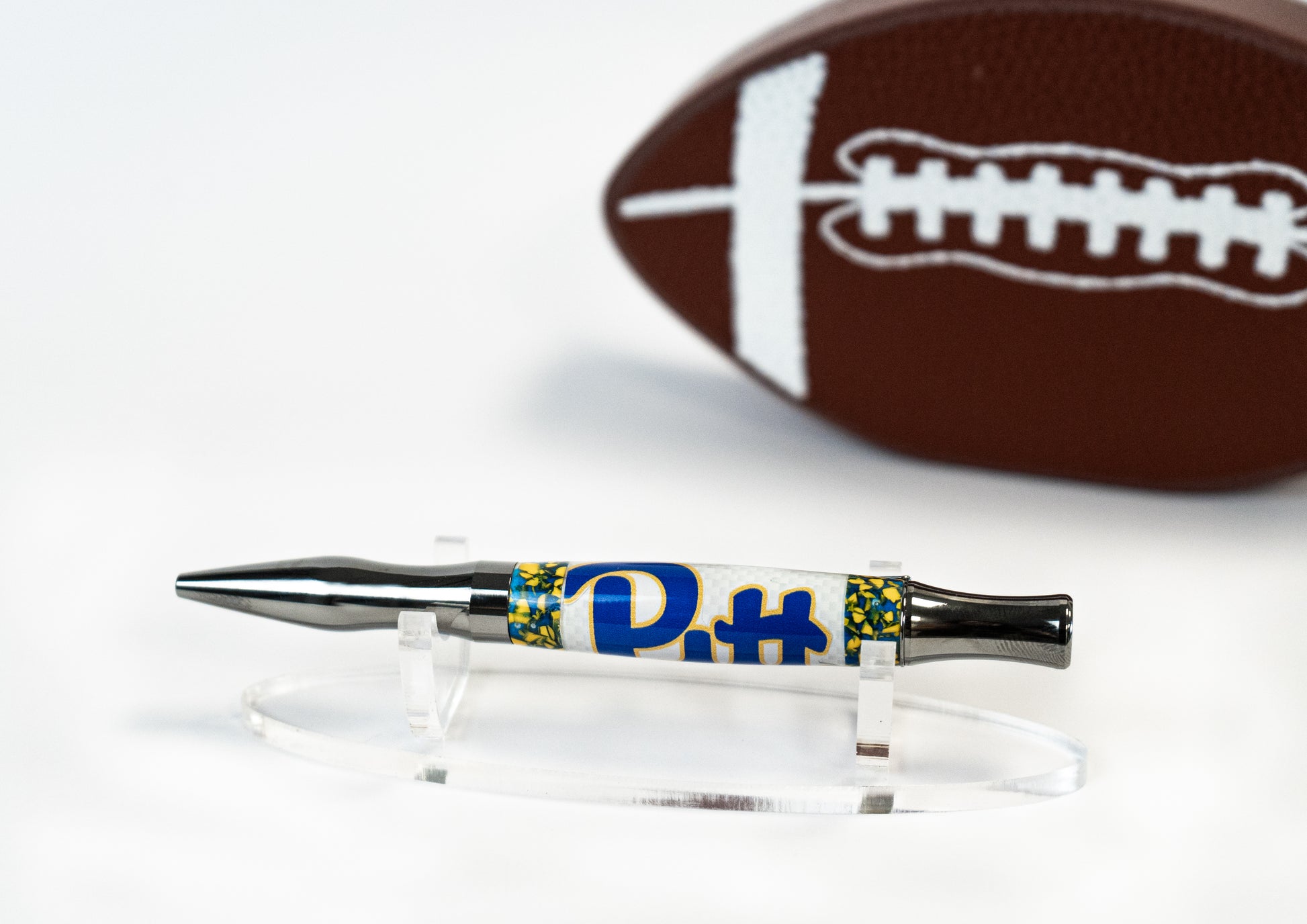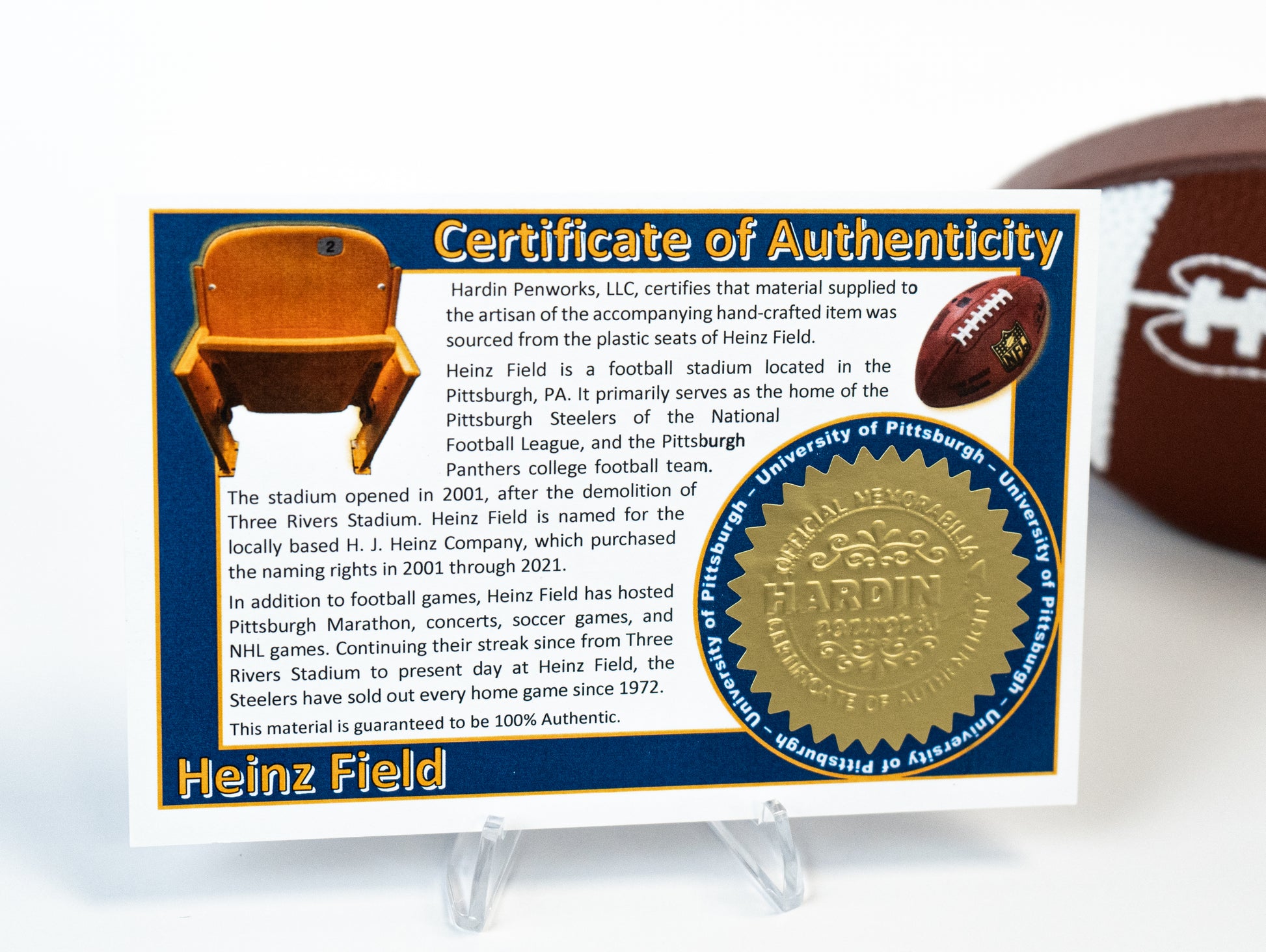 This pen is made with seats from Heinz Field and a licensed sticker of Pitt.