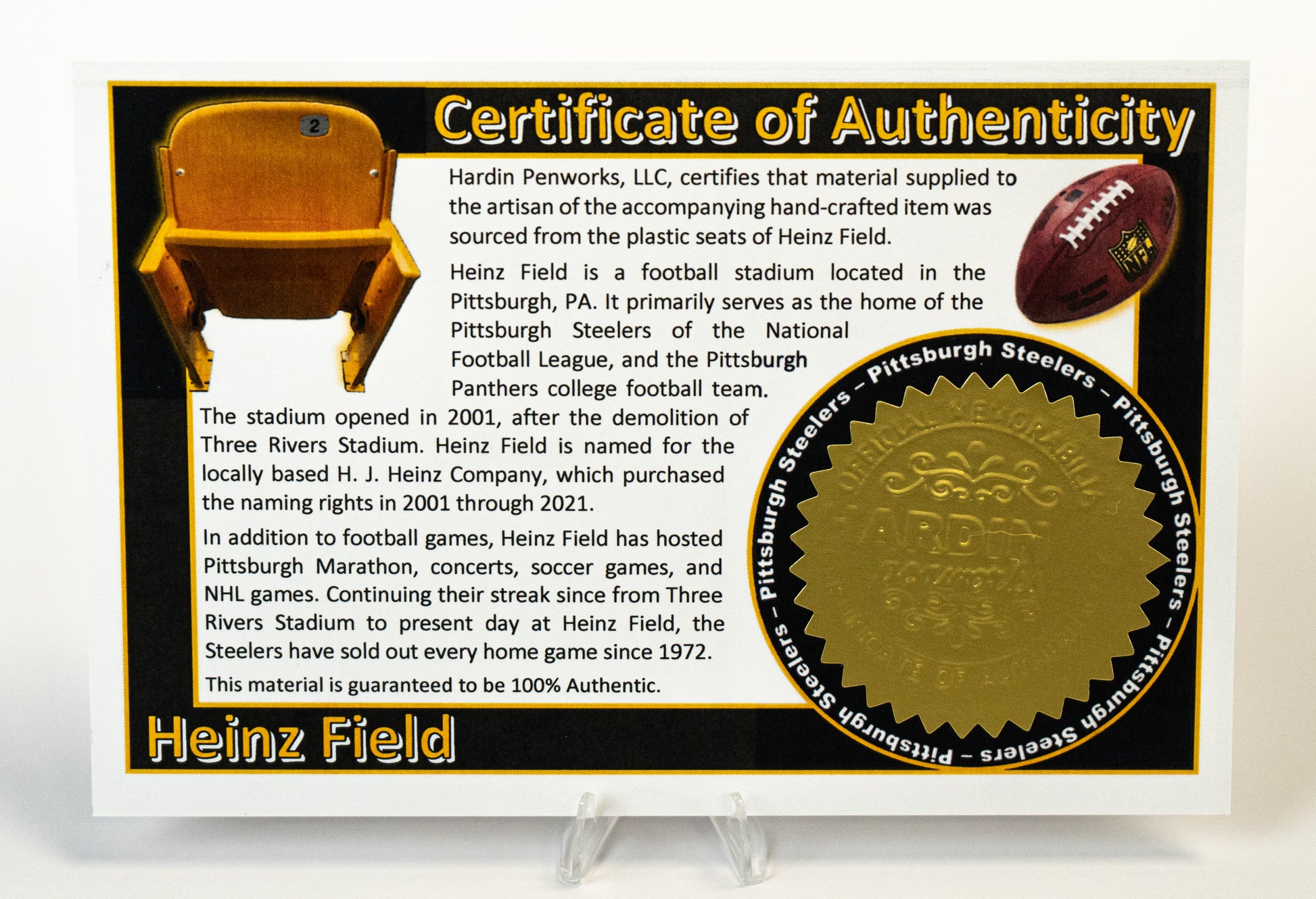 This pen is made with seats from Heinz and a licensed sticker of Steelers