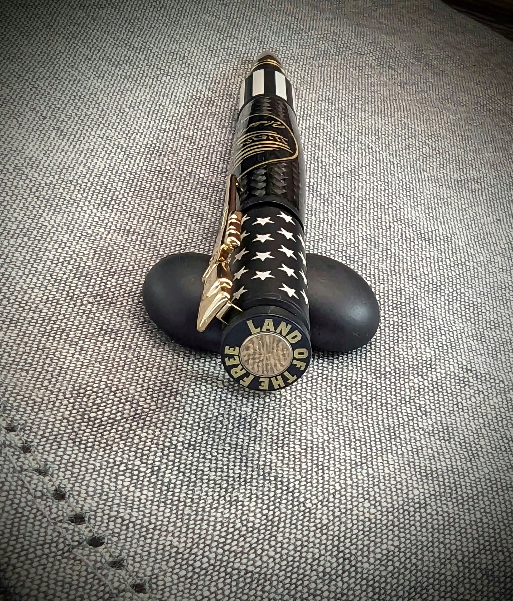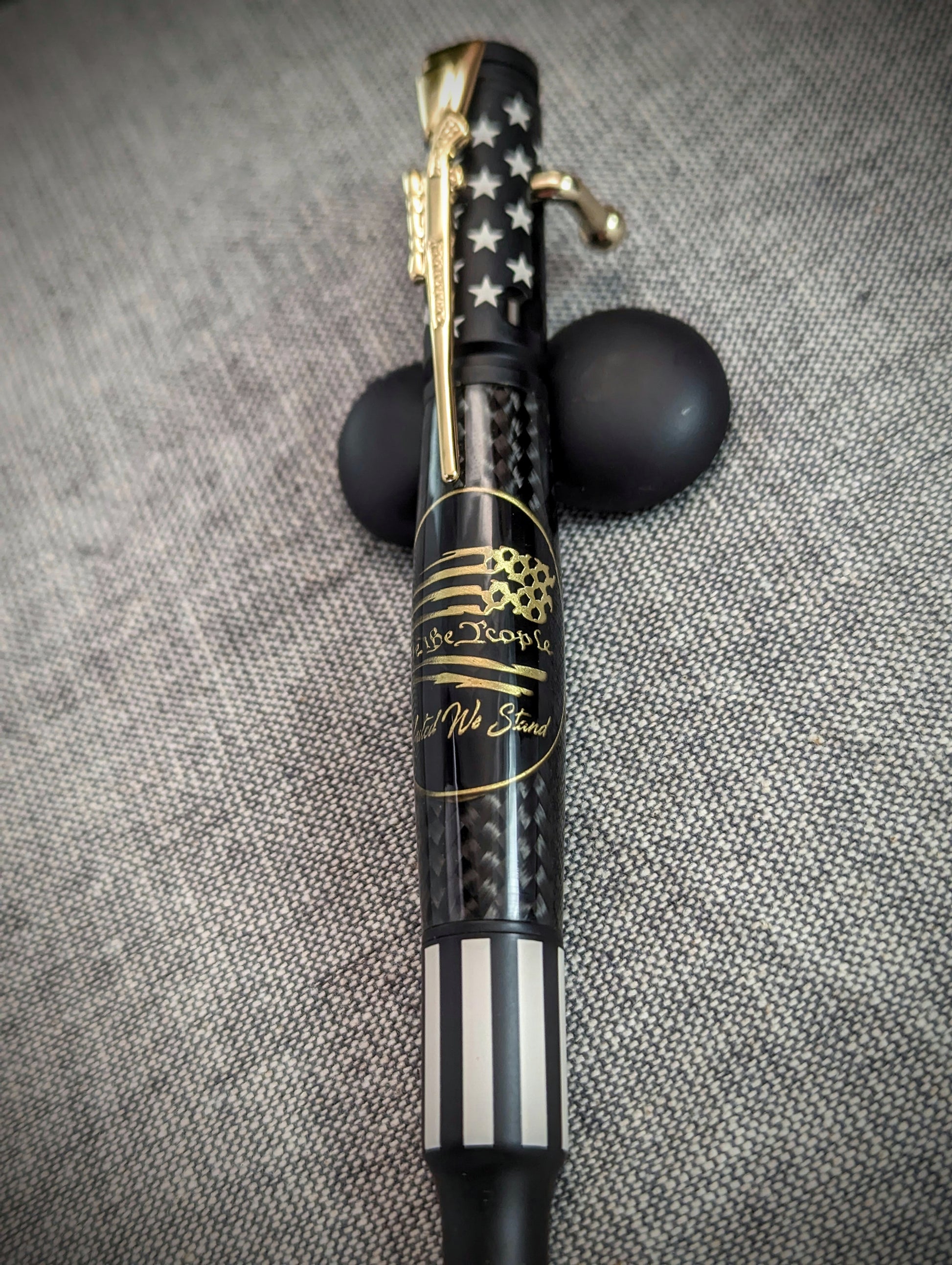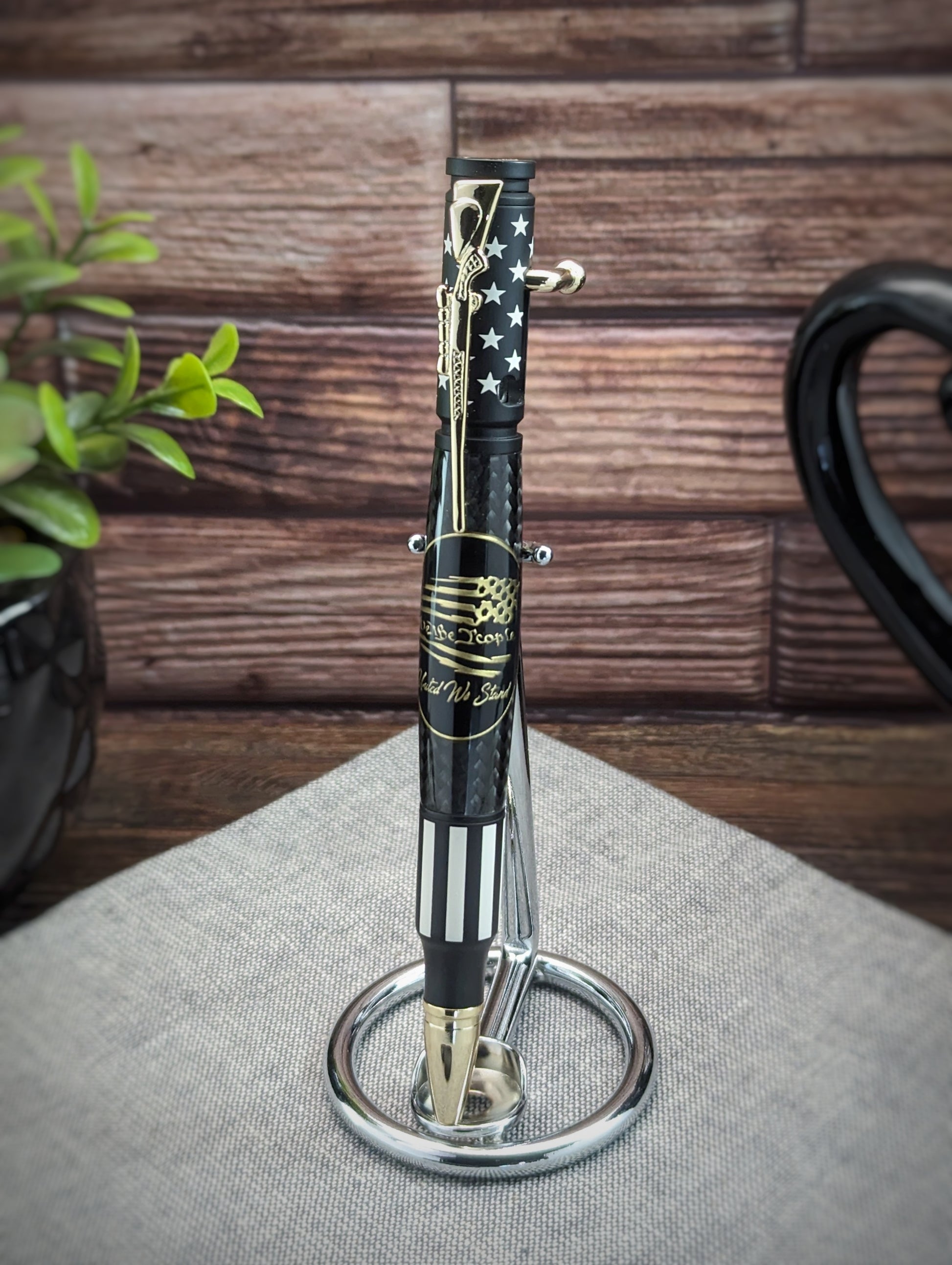 This bolt action pen is more than just a writing instrument - it's a symbol of our shared values as a nation. Adorned with the We The People Medallion and a solidly coated, baked-on ceramic USA flag finish, it represents our resilience, our commitment to excellence, and our unwavering spirit. The ceramic coating used in the pen is the same finish that is found in high-impact firearm parts, which is a testament to its durability. The pen is built to withstand the test of time and the rigors of everyday use. The attention to detail and quality craftsmanship that went into creating this pen is evident in every aspect of its design. With this pen, you can feel a sense of pride and accomplishment knowing that you are holding a piece of American craftsmanship built to last.