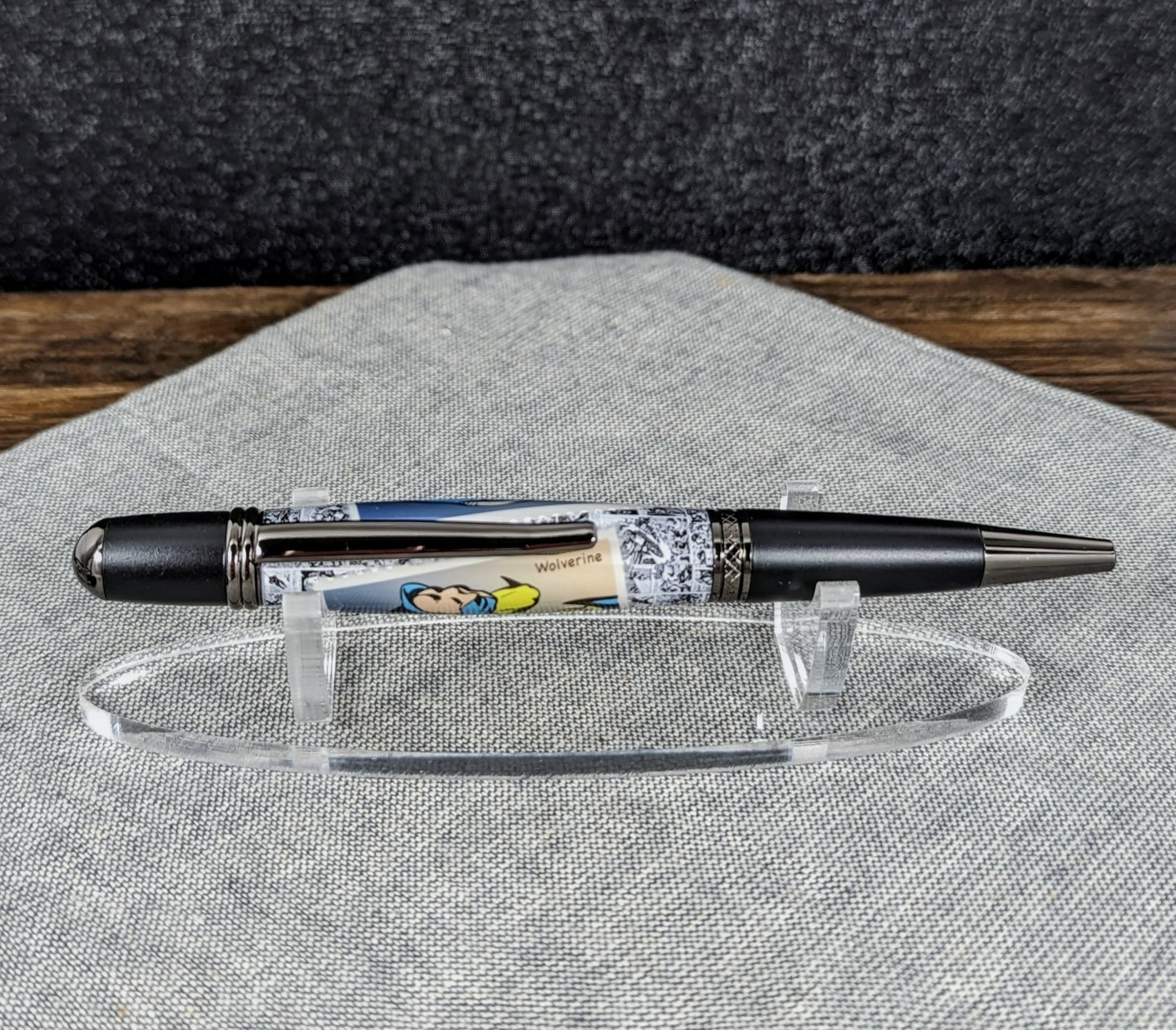 As a passionate comic book enthusiast, you simply cannot afford to miss out on this extraordinary pen. This writing instrument features an authentic and uncanceled 2007 US postage stamp displaying the legendary superhero Wolverine - a character that was brought to life by writer Len Wein and artist John Romita, Sr. for Marvel Comics. Known for his razor-sharp claws, incredibly fast healing abilities and a skeleton reinforced with an indestructible metal Adamantium , Wolverine made his first full appearance in The Incredible Hulk no. 181 back in 1974. This exceptional pen is a must-have for every true fan and collector of comic book memorabilia.